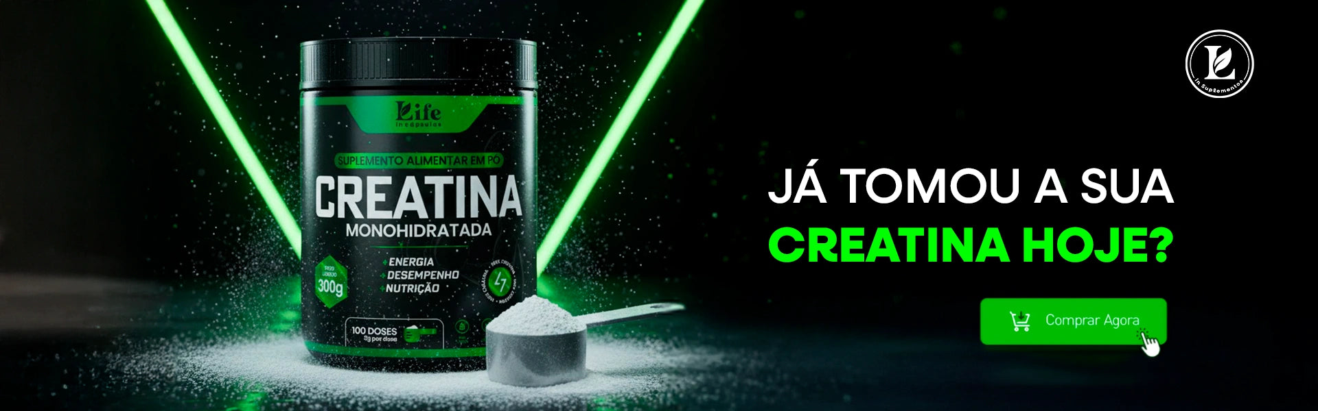 Creatina Monohidratada Life In 100% Pura - 300g - Energia e Performance Natural.
