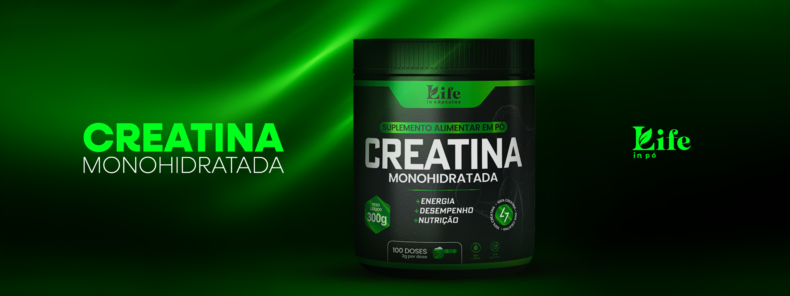Creatina Monohidratada Life In 100% Pura - 300g - Energia e Performance Natural.