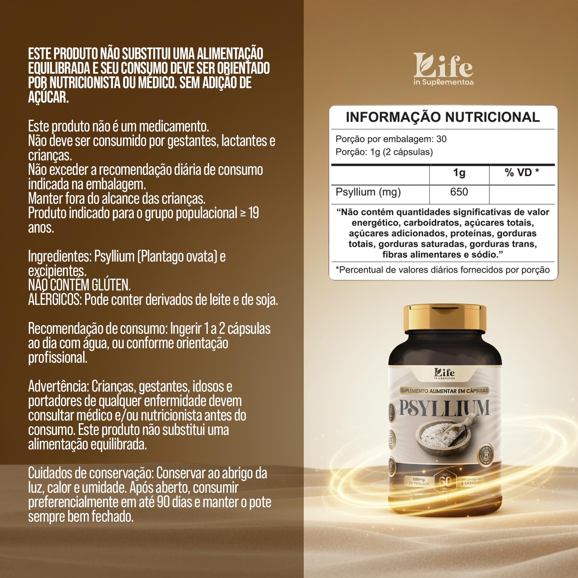 Psyllium Life In - 60 Cápsulas - Suplemento Alimentar Life In Cápsulas | Auxilio a Saúde Intestinal e a Saciedade